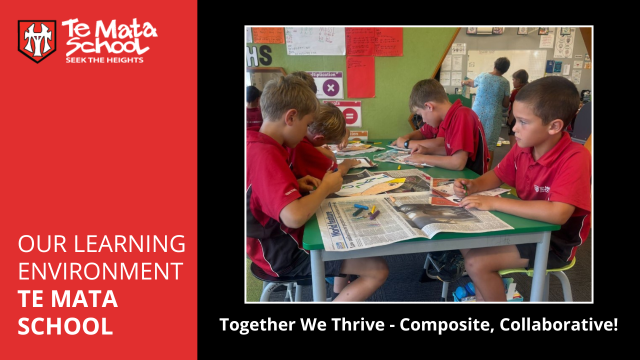 At Te Mata School, we’re proud to be growing our collaborative culture across classrooms, syndicates and the wider school. As part of our Strategic Plan, our goals of Collaborative Learning Teams and Collaborative Community Culture shape how we design learning experiences to be inclusive, connected, and responsive. You’ll see this in action in our composite class models, where Year 3/4 and Year 5/6 learners work together across a flexible space, guided by multiple teachers. With calm environments, clear routines, and strong relationships, we are building a culture that values every learner’s voice, maturity level, learning and pastoral care needs. This collaboration also feeds into our wider strategic goals of building learner agency, strengthening assessment capabilities, and ensuring our localised curriculum helps children thrive.